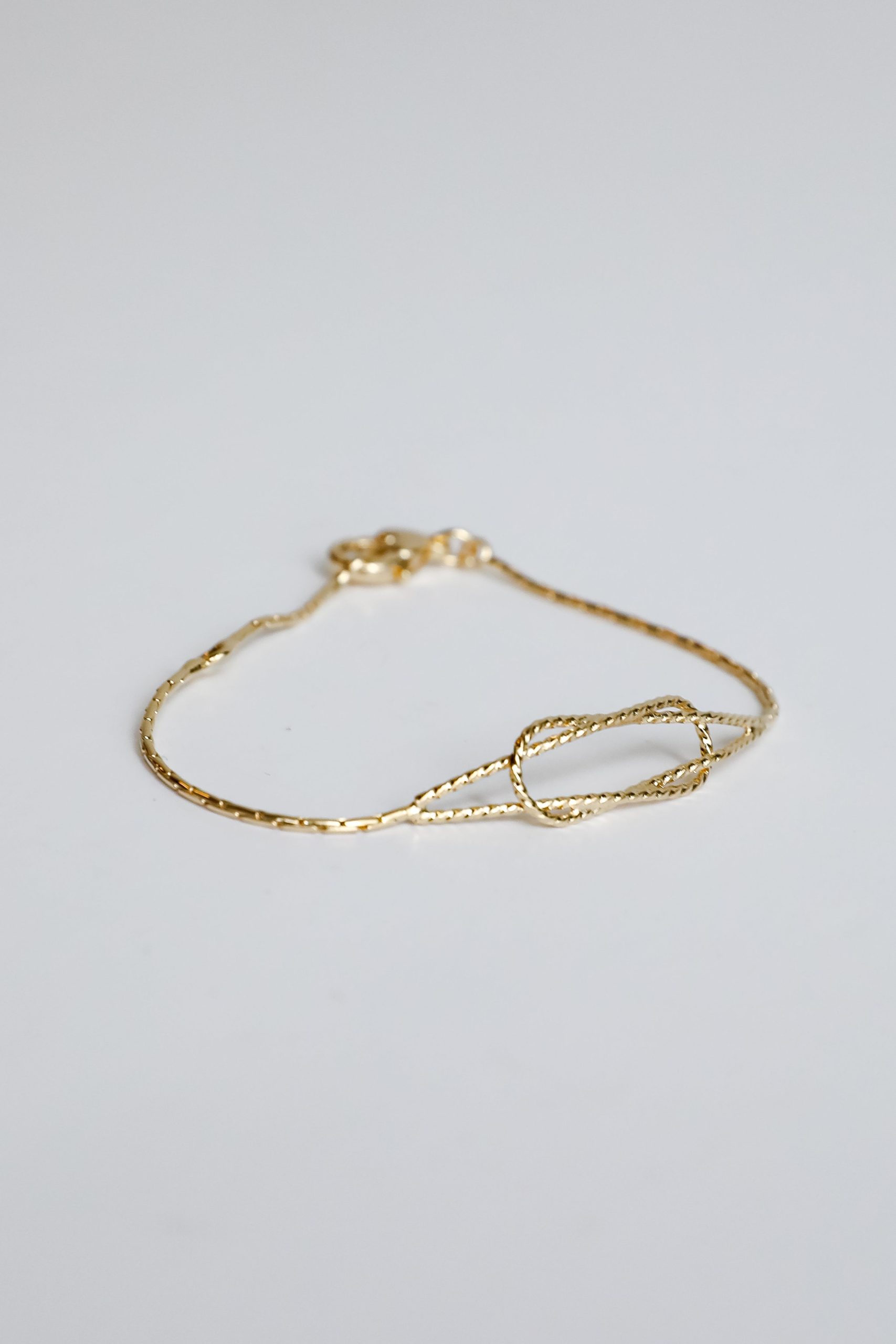 The Claire Gold Chain Bracelet was made to be paired with chic updos and casually elevated ensembles! This chic gold bracelet has a knot detail and a lobster clasp. Style it with any outfit to upgrade your look! Gold Plated Knot Lobster ClaspOne Size | Diameter 2.5”