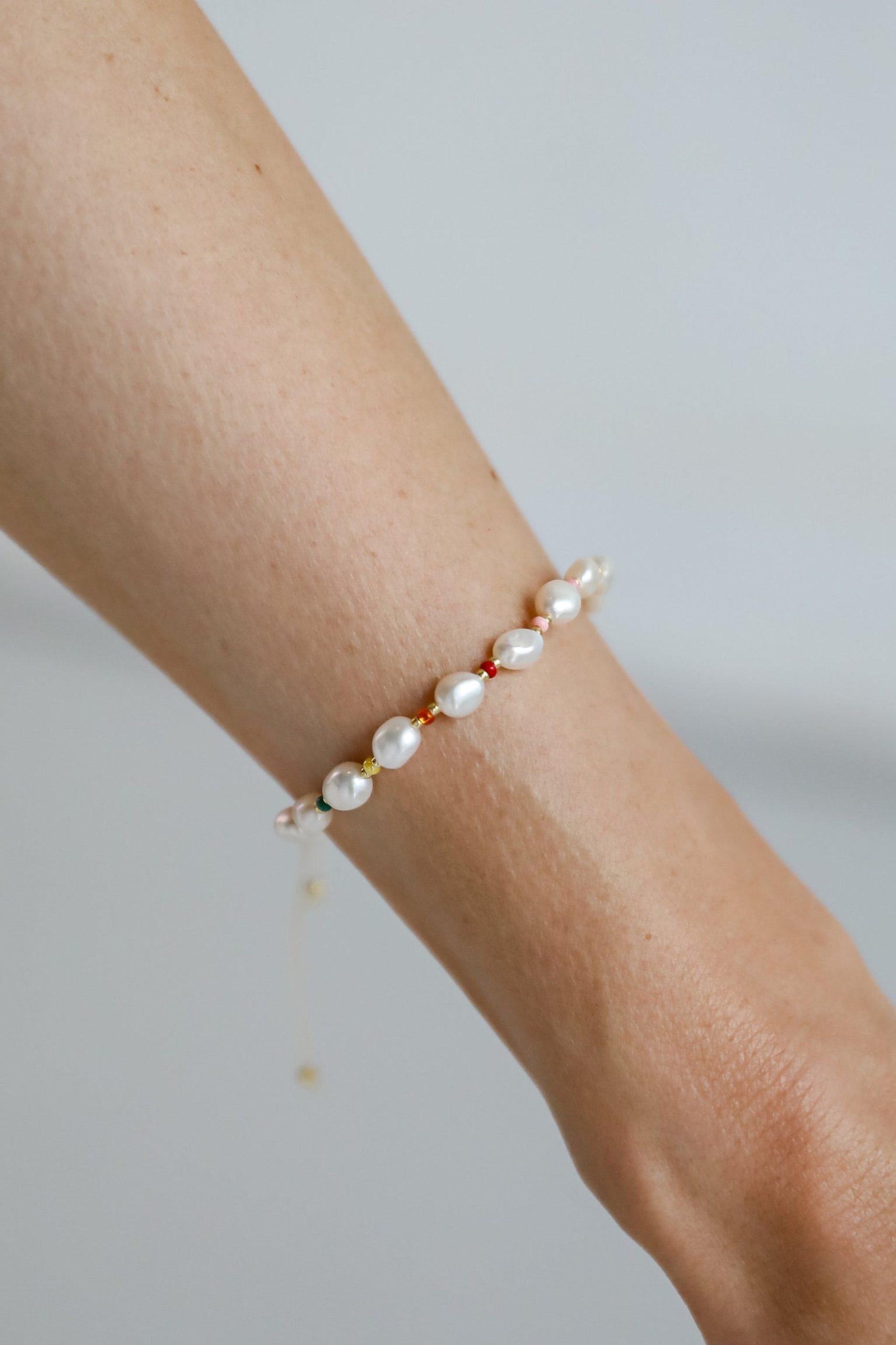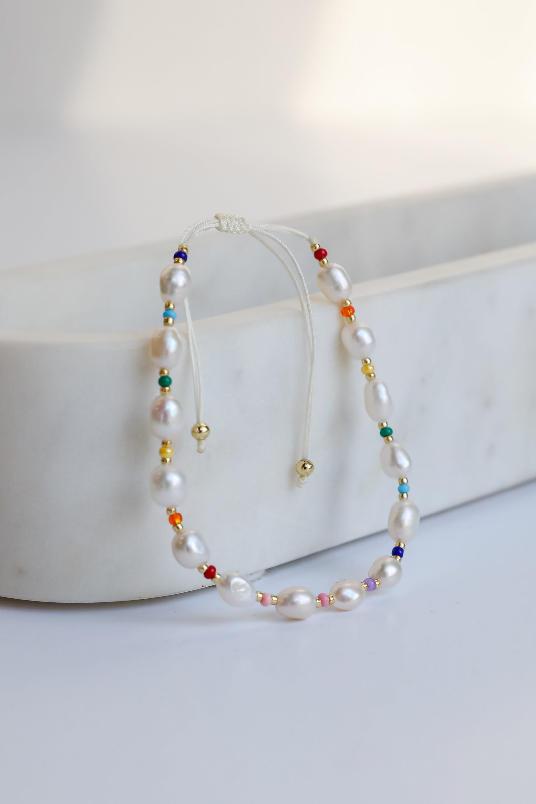 An addition like the Amber White Pearl Bracelet will have everyone admiring your style! This cute bracelet is made of pearl beads with colorful bead accents. Wear it on it’s own, or stack it with other bracelets! Pearls Colorful BeadsOne Size | Diameter 2.5”